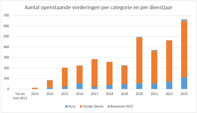 - Sociale dienst : alle terugvorderbare voorschotten en vorderingen die ingesteld werden vanuit de sociale dienst